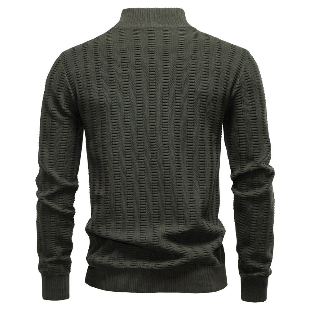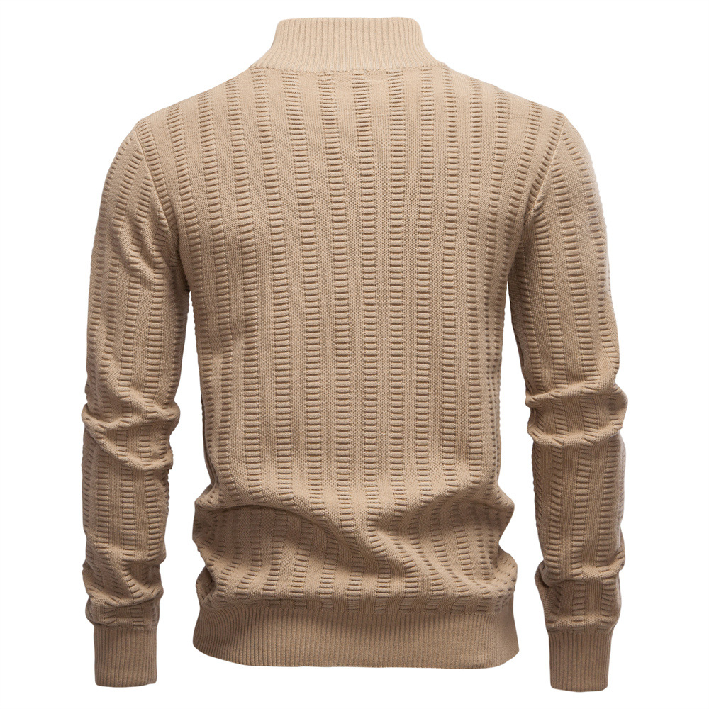 Mens Striped Jacquard Sweater With Half Zip And Stand Collar